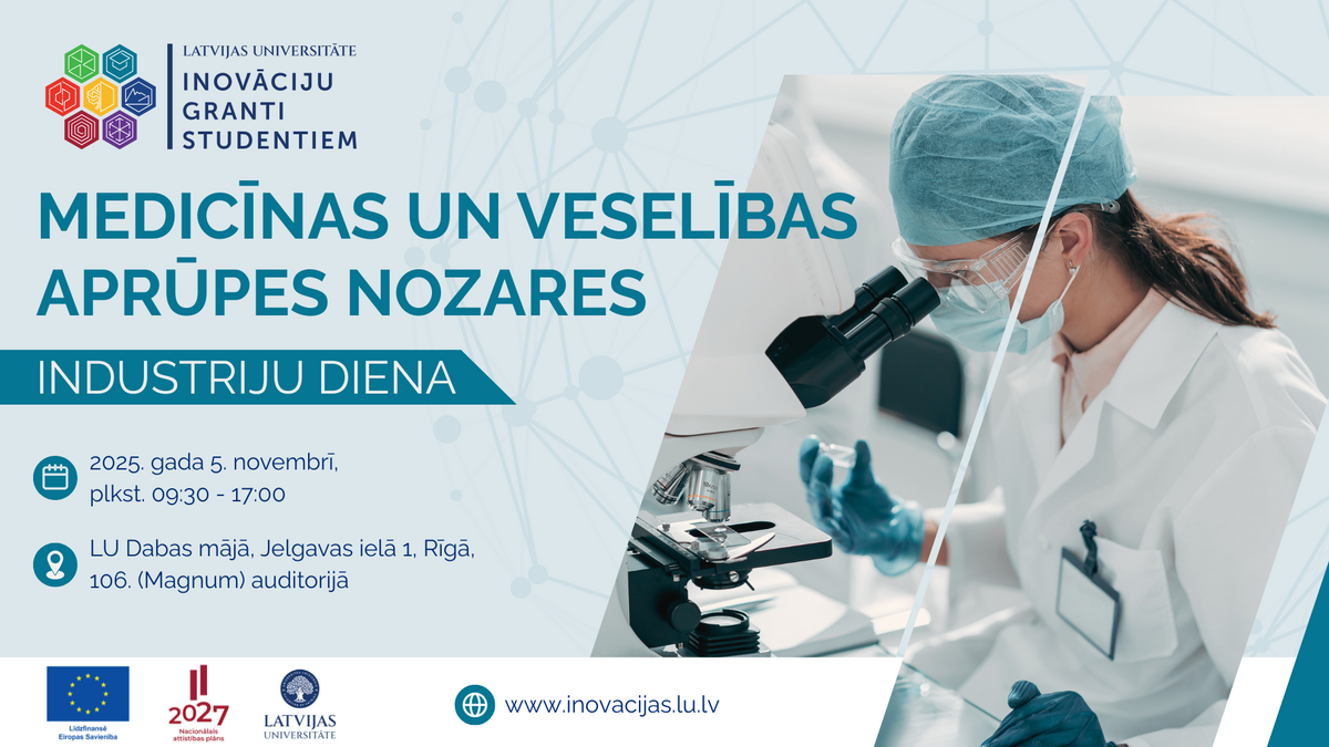 Pasākumu organizē Latvijas Universitātes Inovāciju un akselerācijas centrs Eiropas Reģionālās attīstības fonda līdzfinansētā projekta Nr. 1.1.1.7/1/25/A/005 “Latvijas Universitātes inovāciju granti studentiem” ietvaros.